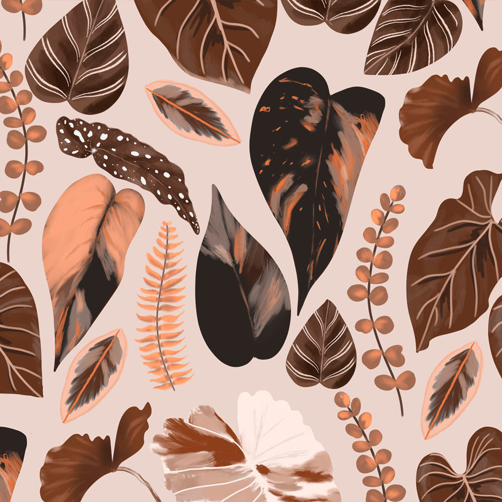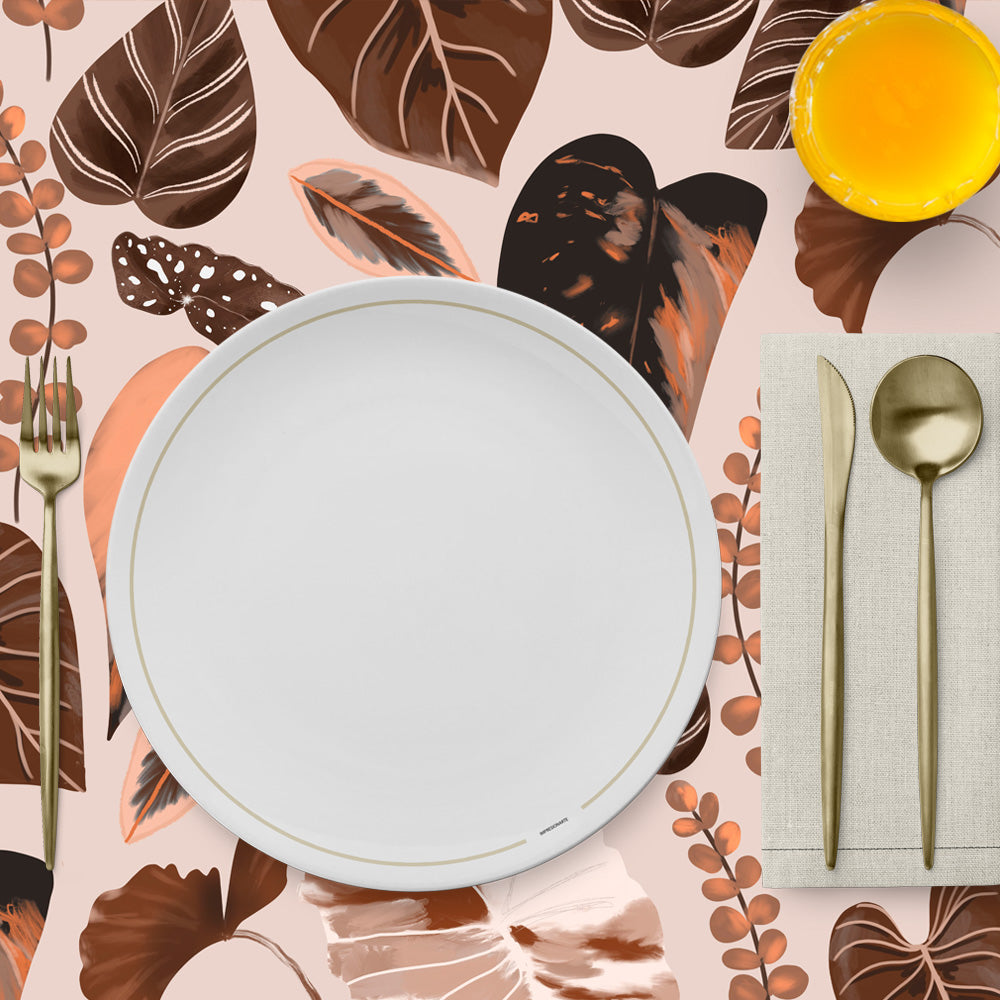 Mantel de Hule Hojas tropicales tonos ocre
