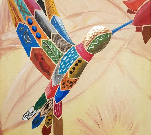 Canvas Colibrí bebiendo néctar de una flor