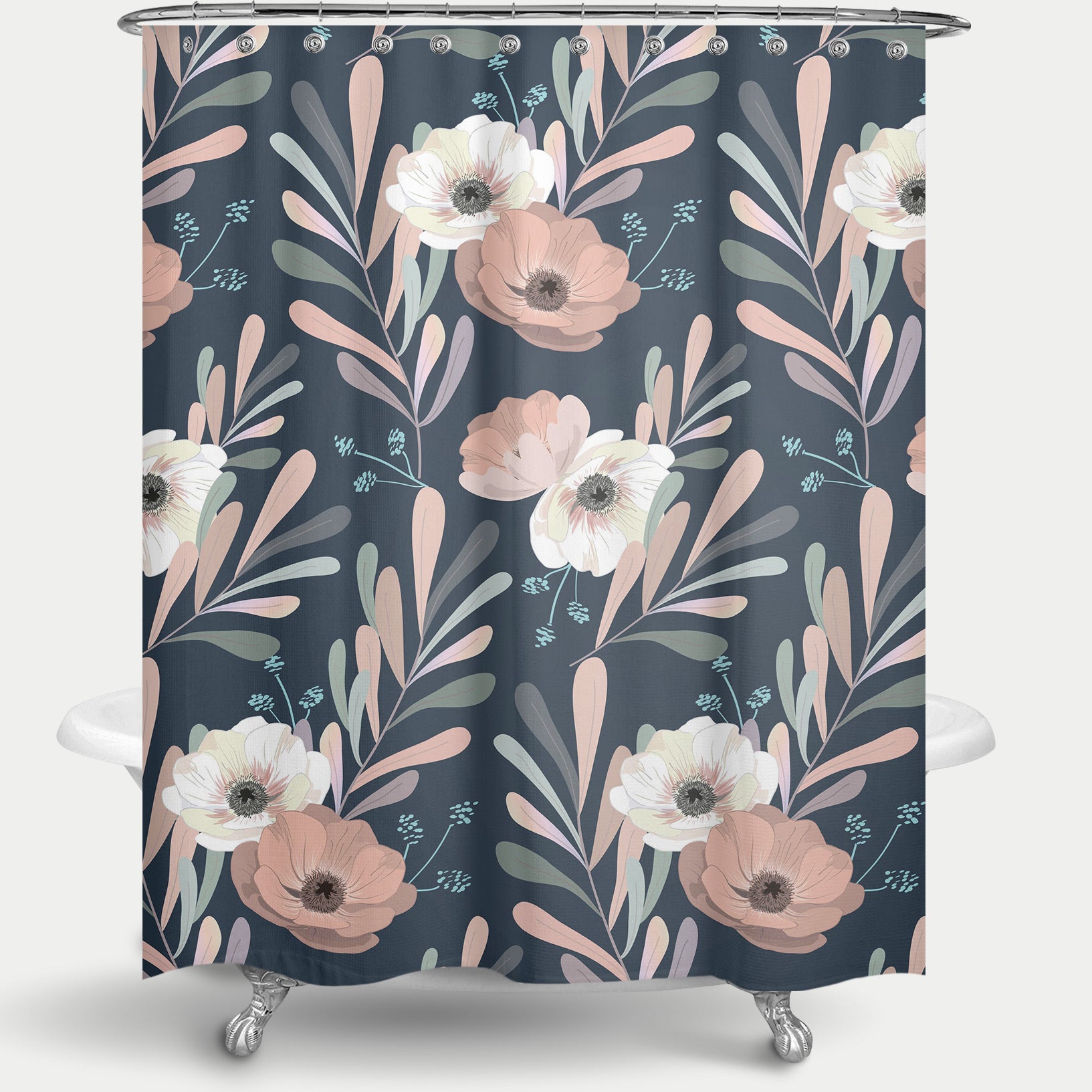 Cortina de Baño Anemones & Eucalyptus Blue