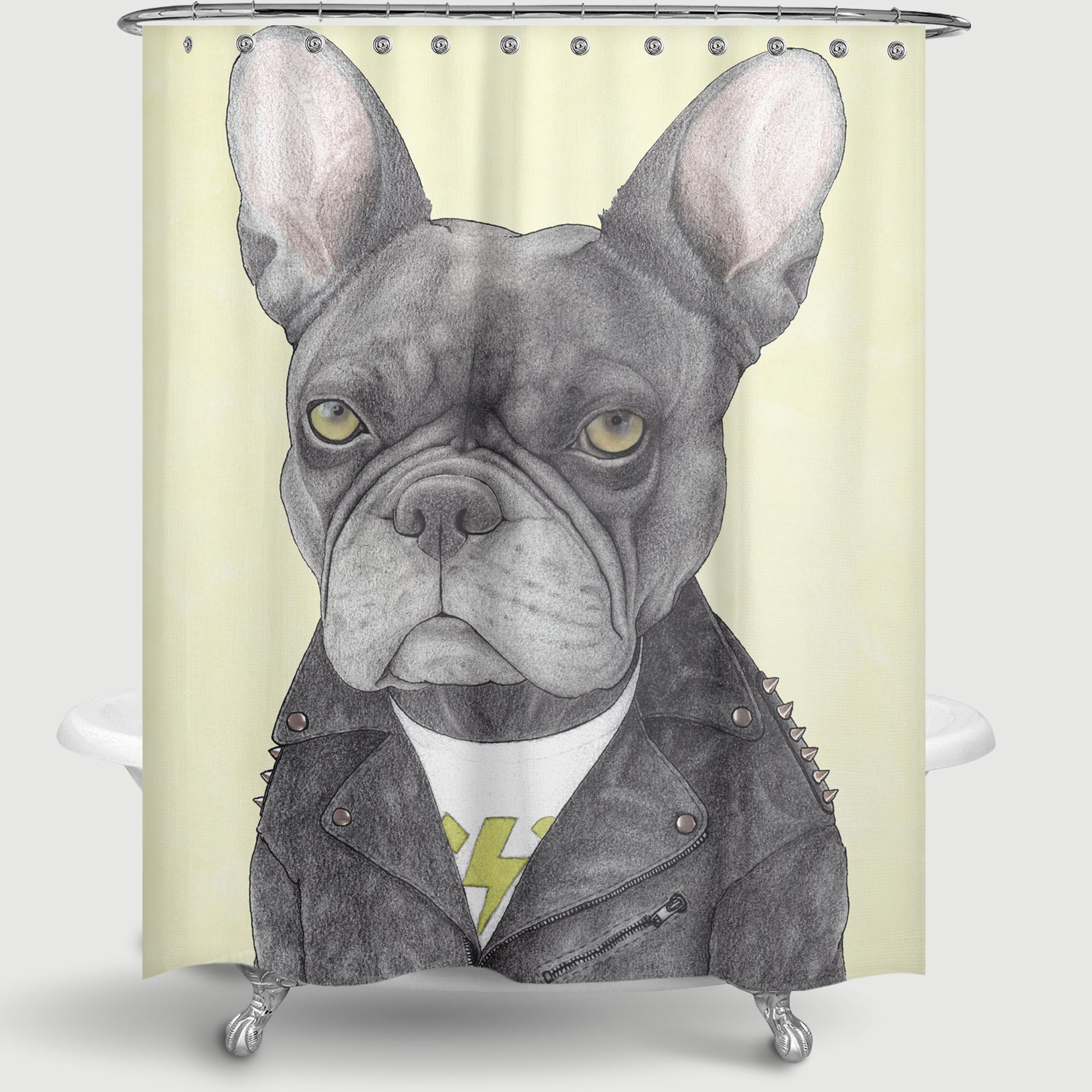 Cortina de Baño Bulldog francés rockero