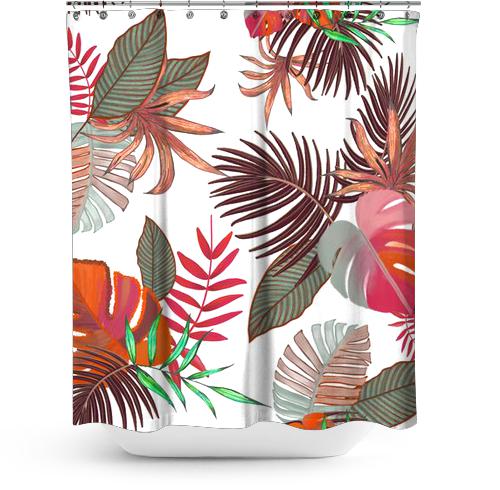 Cortina de Baño Hand Drawn Monstera, Palm Leaves Nature White