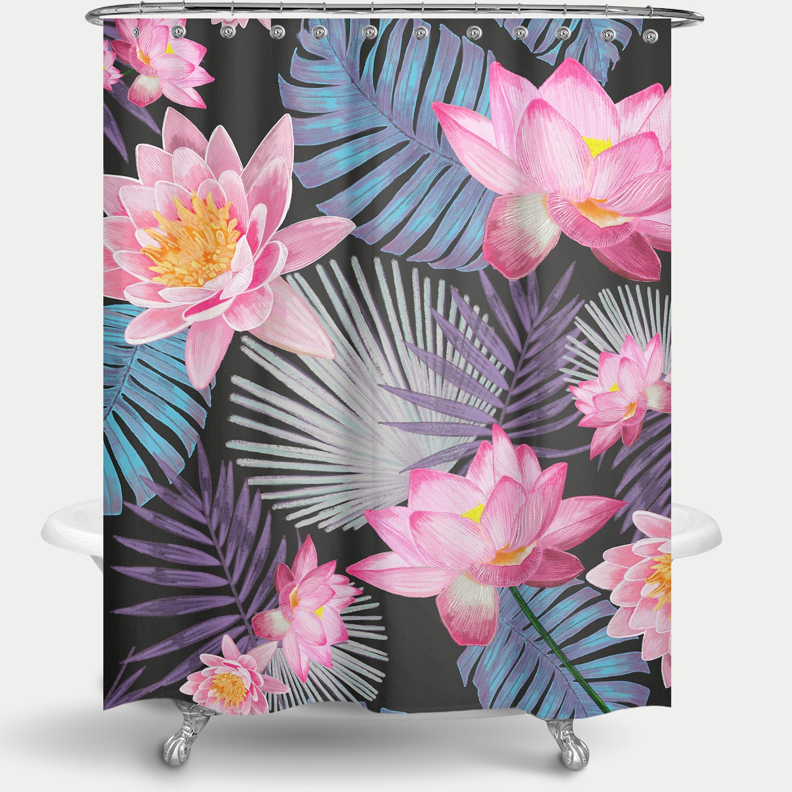 Cortina de Baño Hand drawn Pink Lotus Flower black
