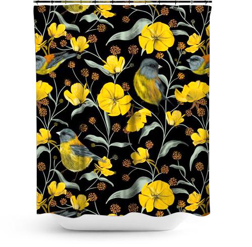 Cortina de Baño Pajaros y flores amarillas