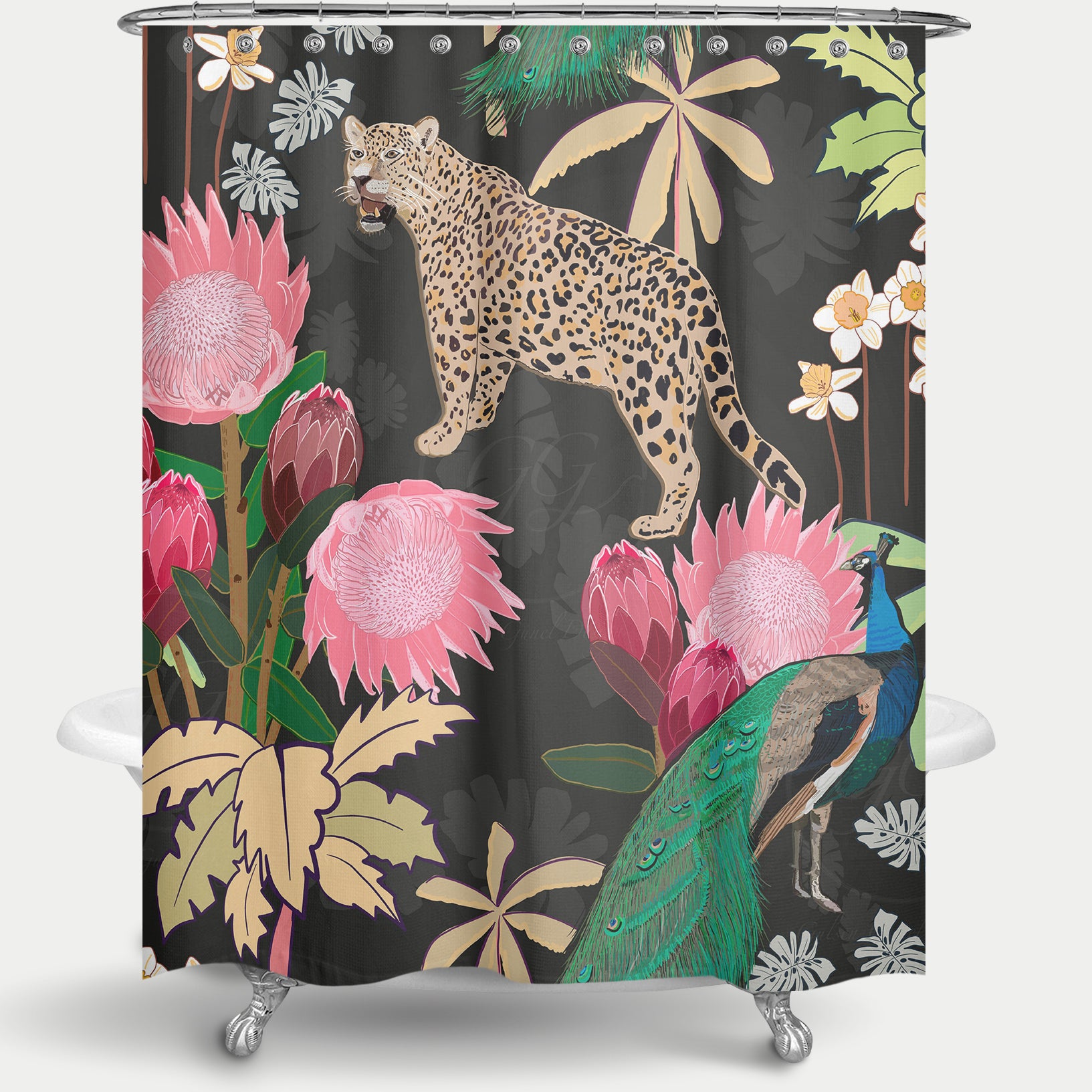 Cortina de Baño Tiger and Peacock With Tropical black