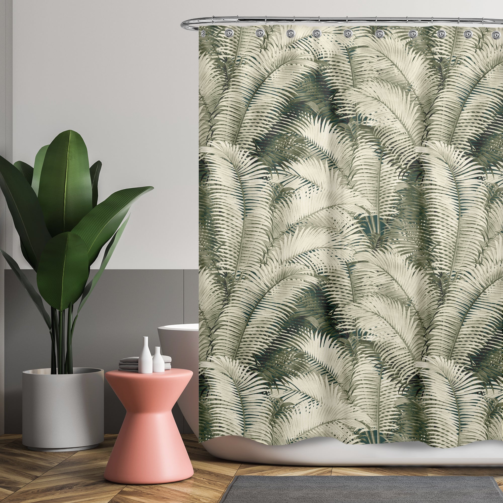 Cortina de Baño Tropical Leaf Pattern