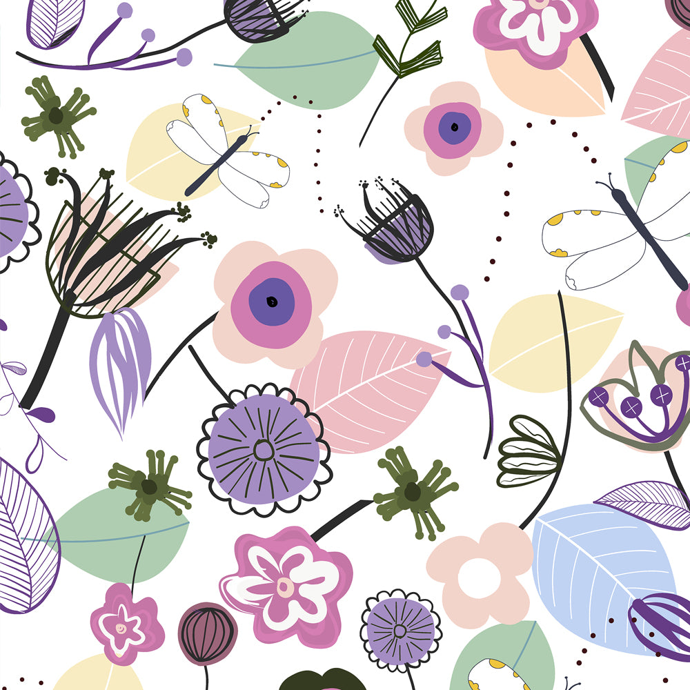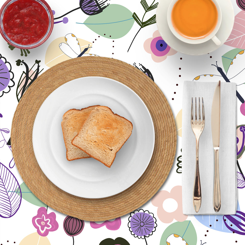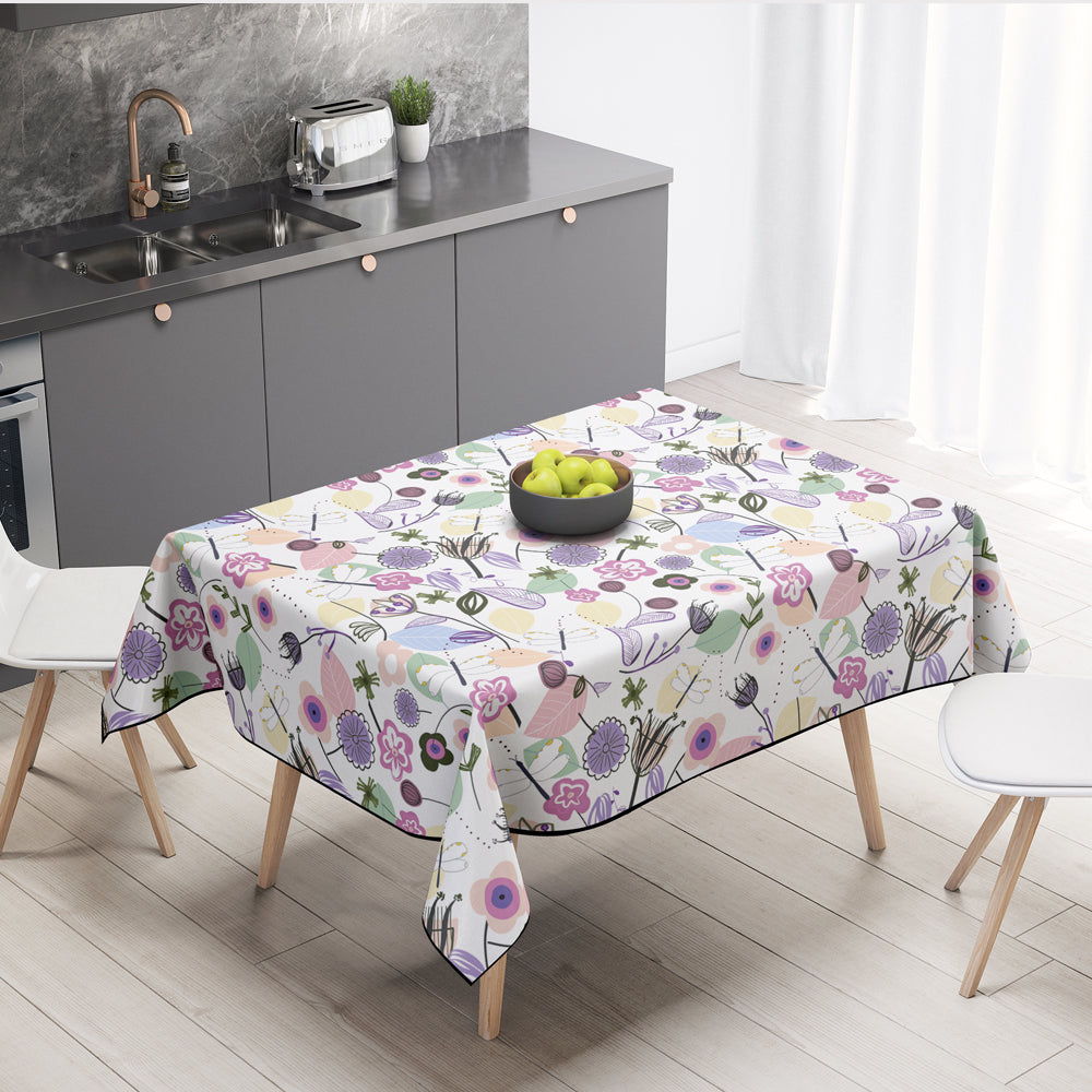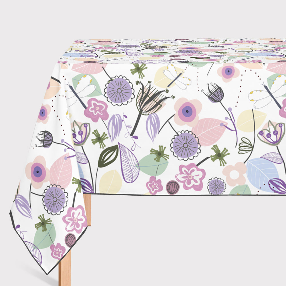 Mantel de Hule Abstract Flowers and Dragonfly Pastel Colored Floral S