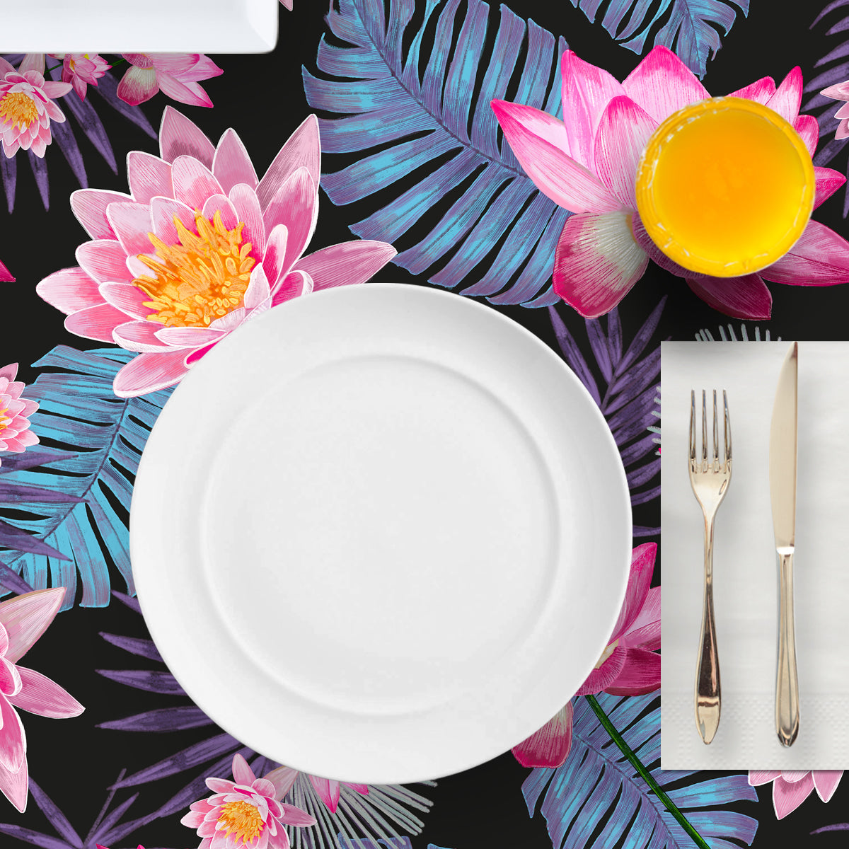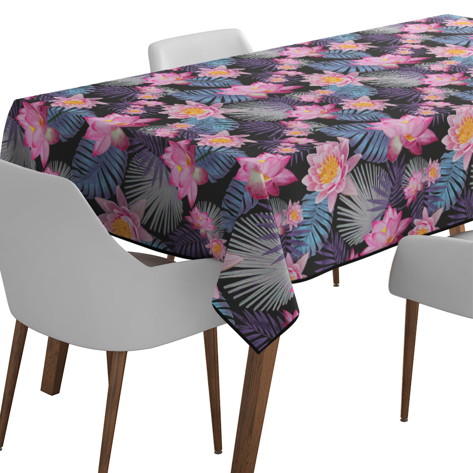 Mantel de Hule Hand Drawn Pink Lotus Flower Black
