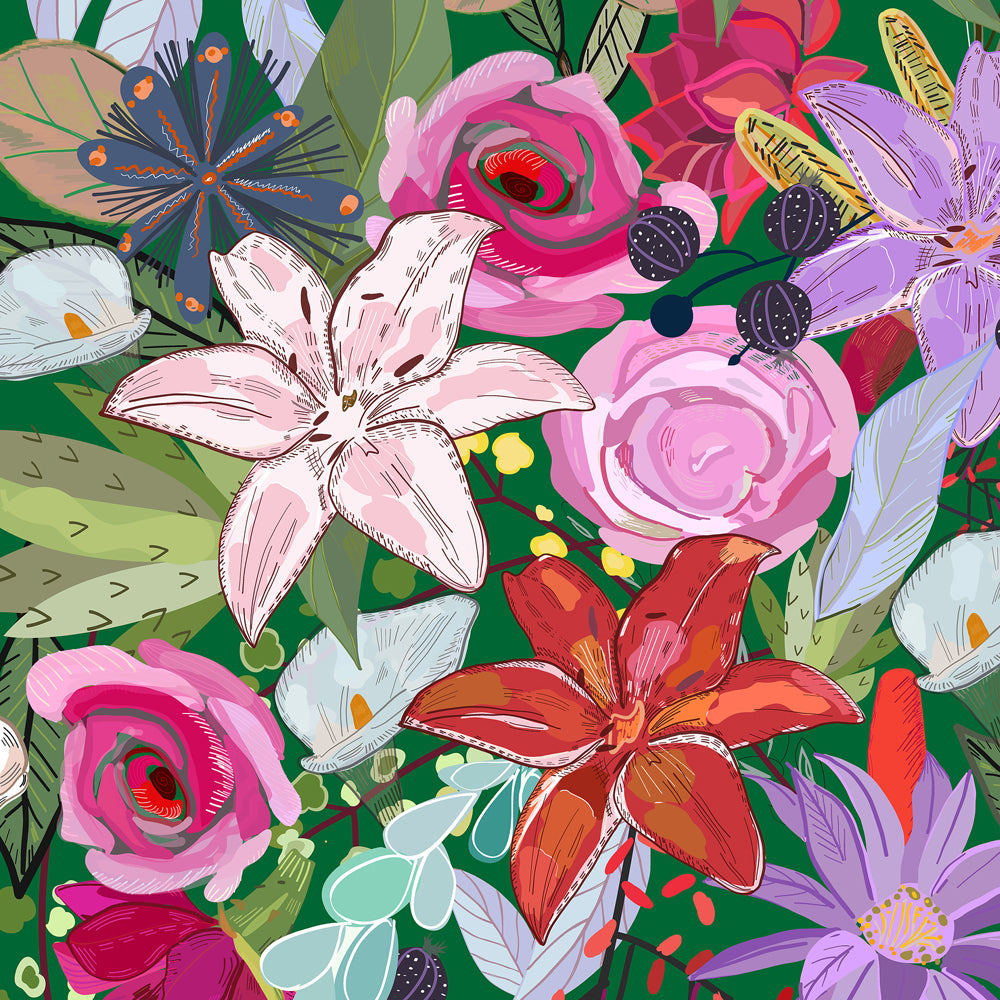 Mantel de Hule Lily and Colorful Flowers Pattern