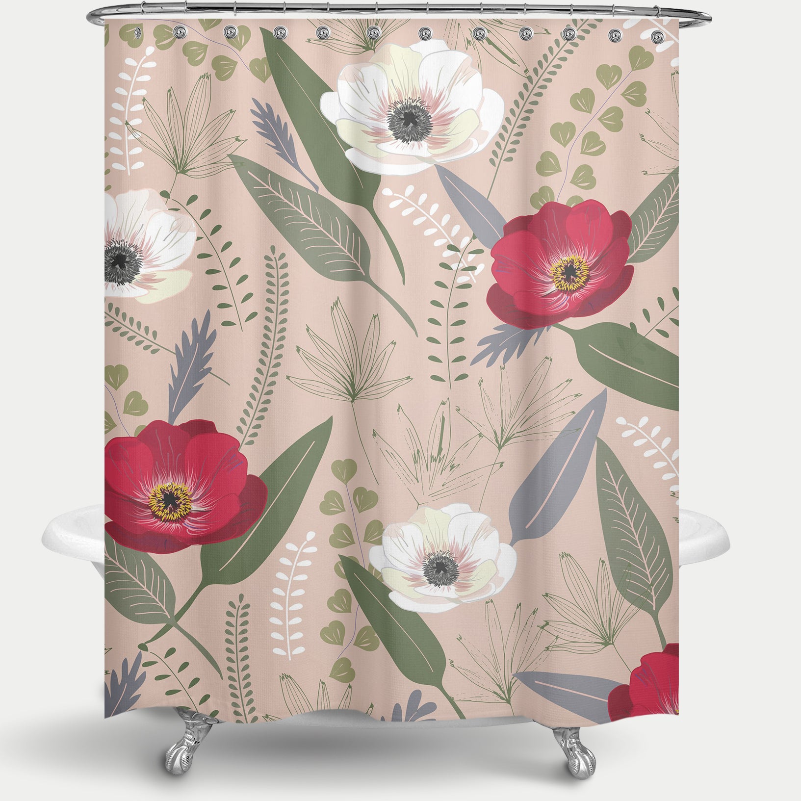 Cortina de Baño Anemones & palms pink